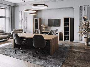 Каталог компании включает в себя офисные столы и стулья, стильные и практичные ресепшены, которые задают тон всему офису, а также мебель для гостиничных номеров: